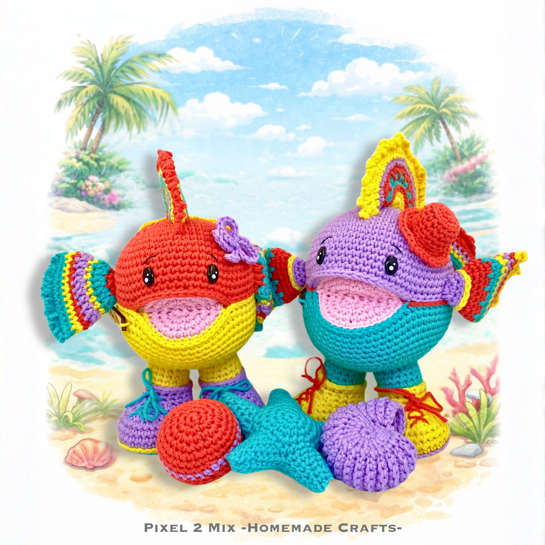 Amigurumi Crochet Box & Crocheted Stuffed Toys: Fien 💖🐠 & Finn 💙🐟 - The Tropical Walking Fish