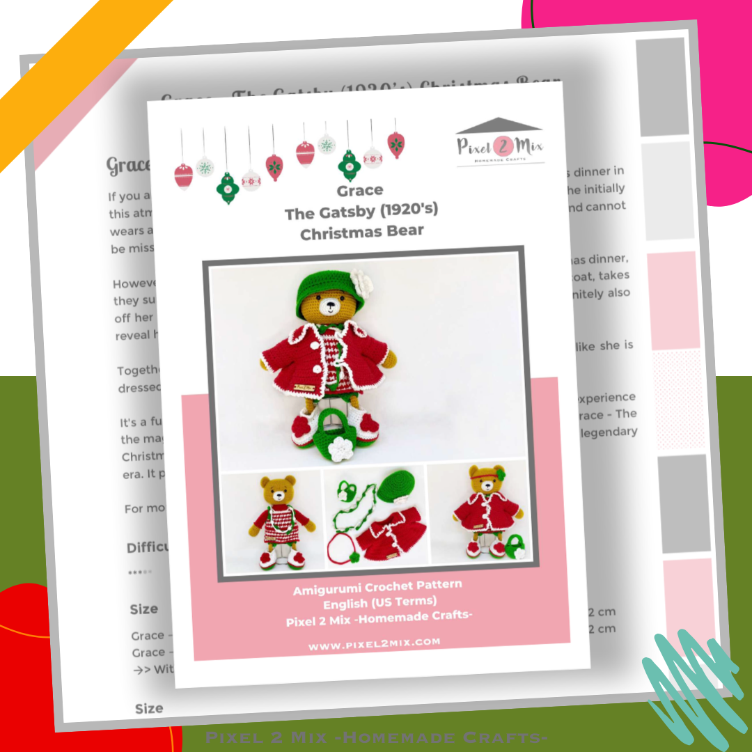What makes Grace so special? The Grace - The Gatsby (1920s) Christmas Bear crochet pattern includes: