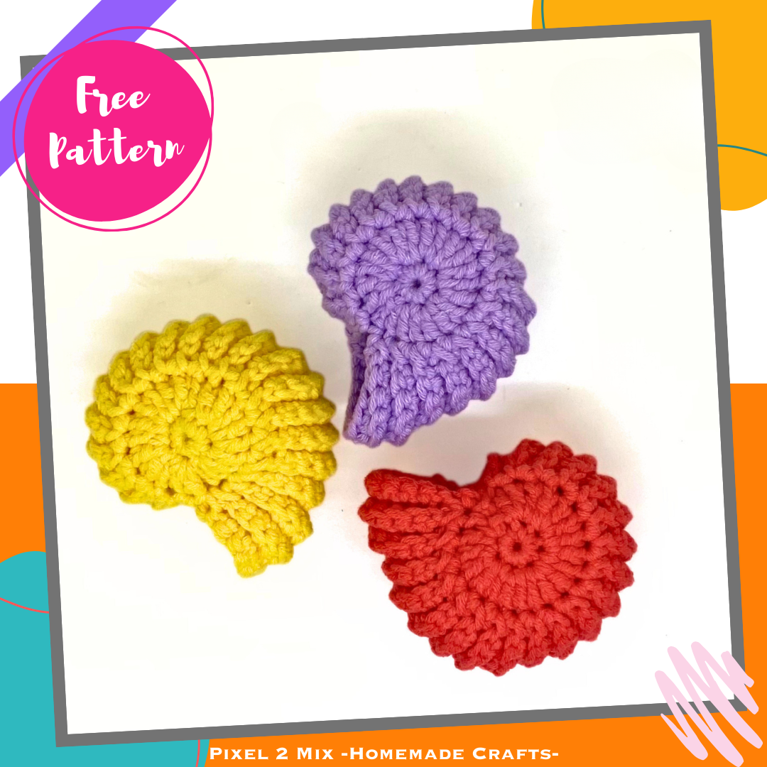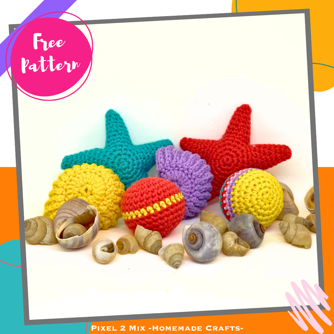 Crochet your own Tropical Sea Accessories with this free PDF crochet pattern from Pixel 2 Mix –Homemade Crafts–! Available in Dutch and English. With this free crochet pattern, you can crochet a starfish, ammonite shell, or beach ball. Fun to cuddle with, play with, or use as cheerful home decor.